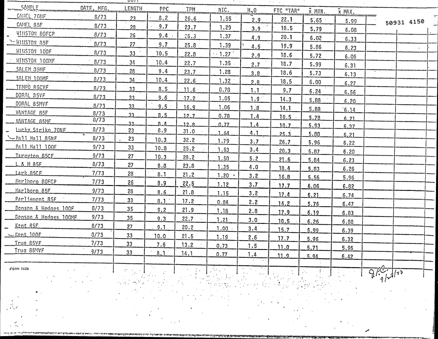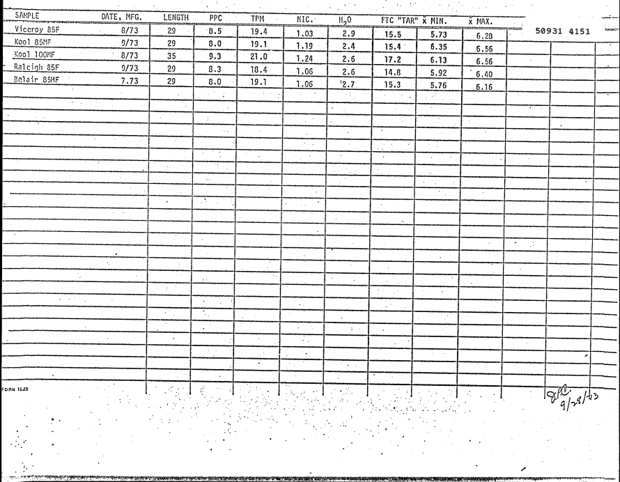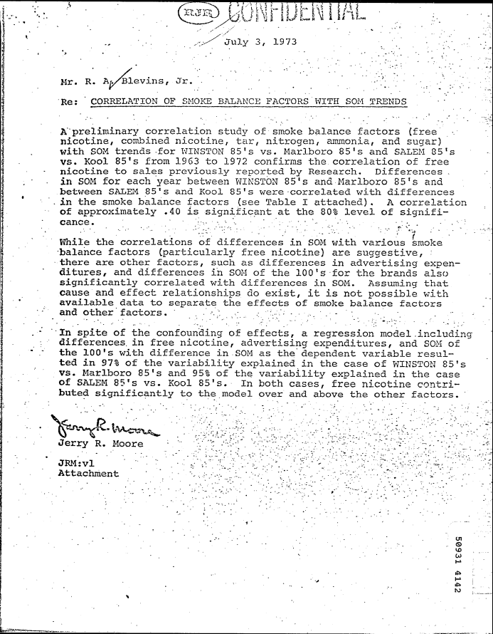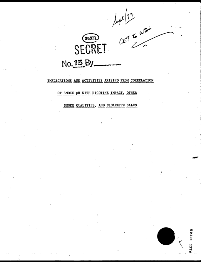 Correlation of Smoke pH with Nicotine Impact, Other Smoke Qualities and Cigarette Sales," Teague, Claude, RJR (author), Oct. 2, 1973,