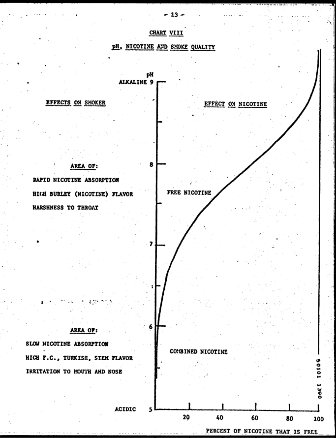 is deliberate and controlled. This has raised questions as to (1) the effect of higher smoke pH on nicotine impact and smoke