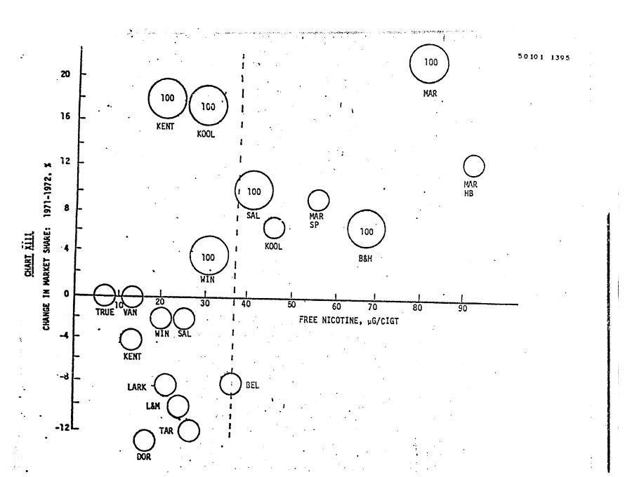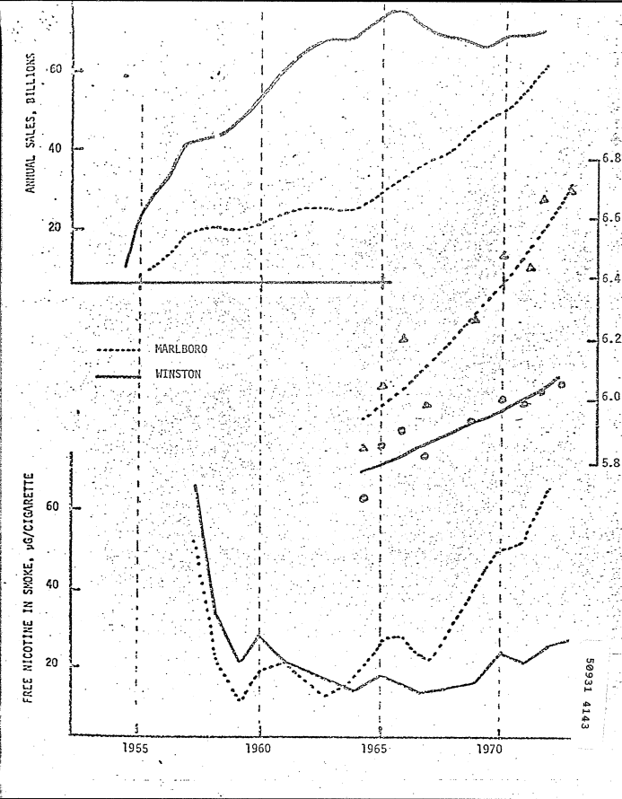 "free" nicotine, and that all brands surveyed having over about 35 micrograms of 'free' nicotine/cigarette increased