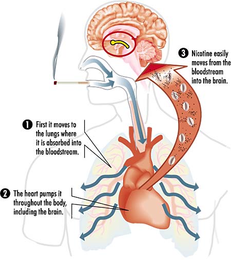 brain. As the person continues to smoke, his/her brain actually creates more nicotine receptors with which to