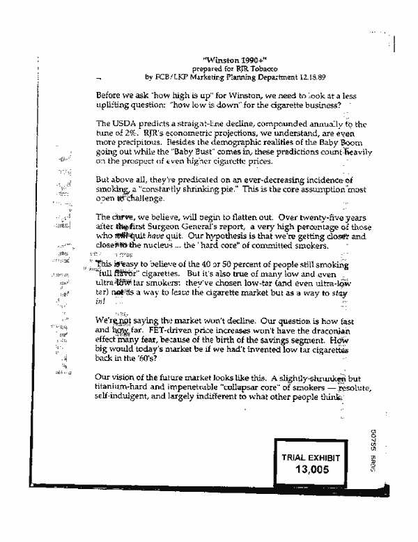 ...RJR's econometric projections... [are] predicated on an ever-decreasing incidence of smoking, a "constantly shrinking