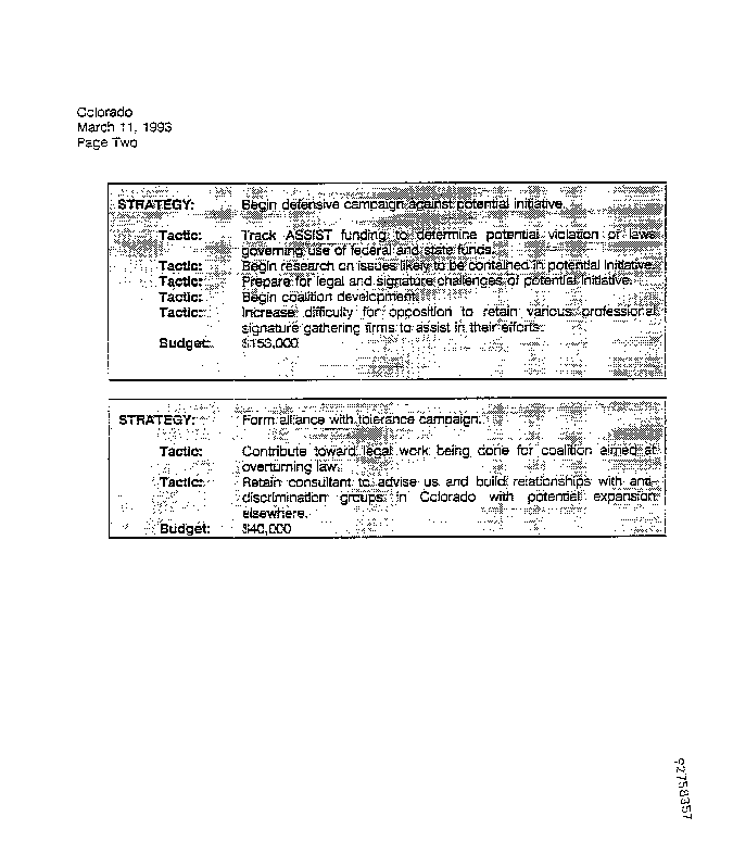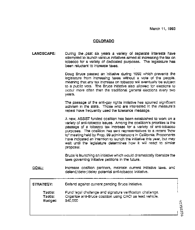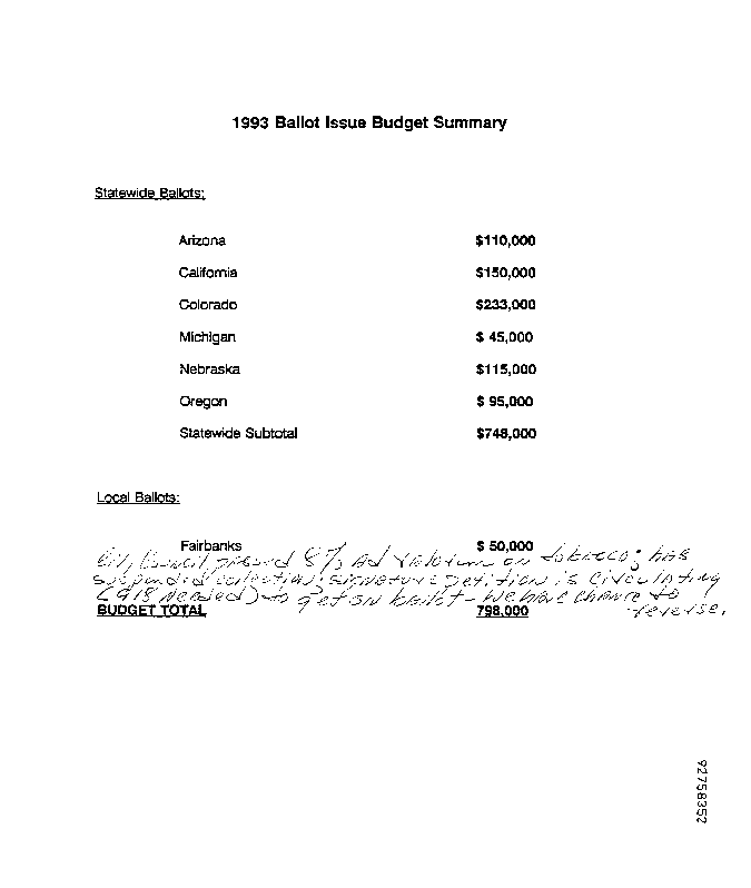 It is interesting to note that the biggest budget was devoted to Colorado, as the TI was concerned that several members of Colorado ASSIST had attended a Prop. 99 "how to" meeeting in California at the same time that citizen-activist Douglas Bruce was working to liberalize the laws regarding initiative and referndum in Colorado.