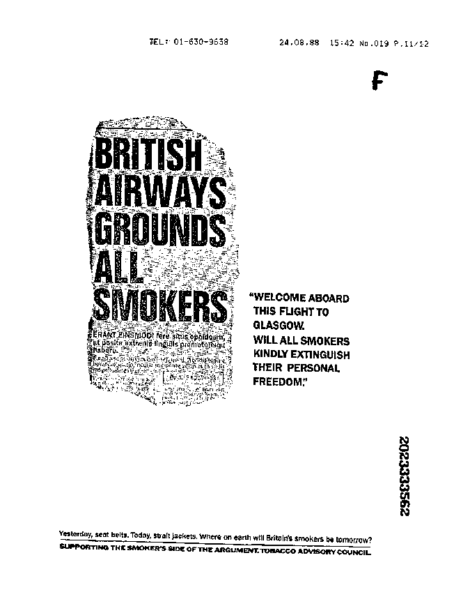 Title: Welcome Aboard This Flight to Glasgow. Will All Smokers Kindly Extinguish Their Personal Freedom