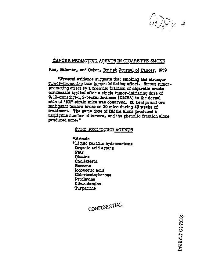 Cancer Promoting Agents in Cigarette Smoke