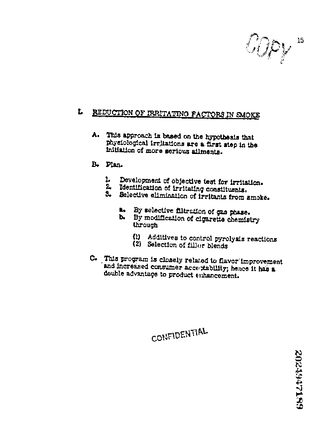 I. Reduction of Irritating Factors in Smoke