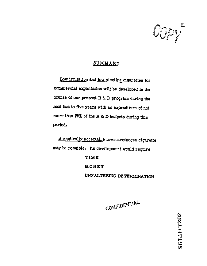 R & D Program Leading to a Medically Acceptable Cigarette