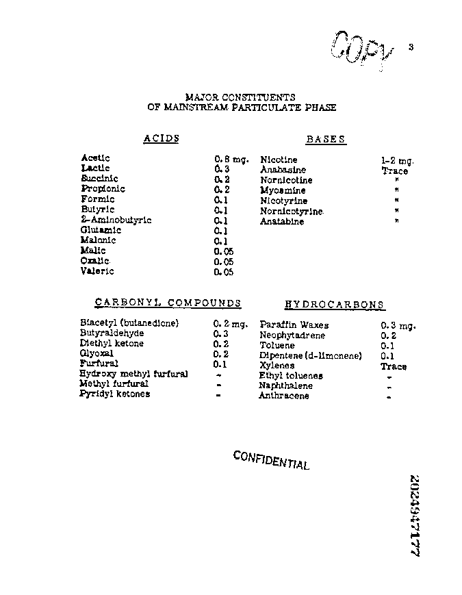 Major Constituents of Mainstream Particulate Phase