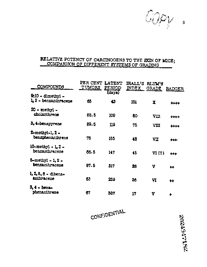 Relative Potency of Carcinogens to the Skin of Mice: