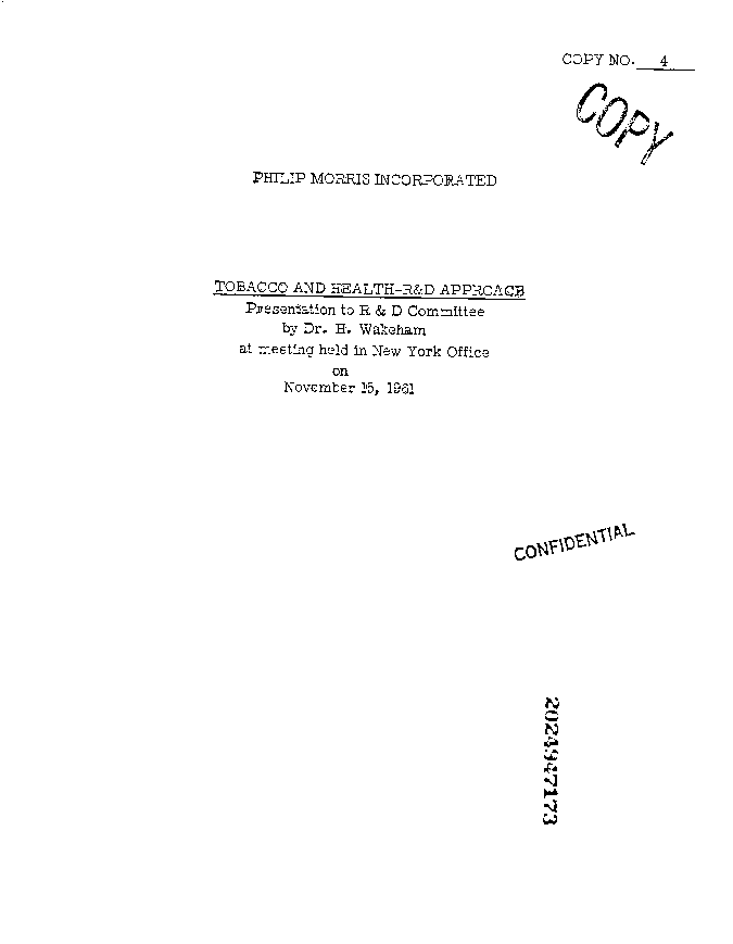 Philip Morris Confidential Document: Tobacco and Health R & D Approach