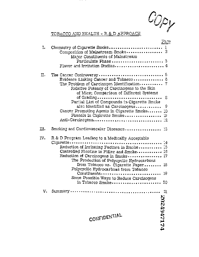 Title: Tobacco and Health R & D Approach