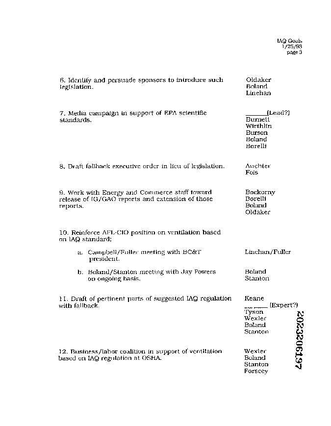 "6. Identify and persuade sponsors to introduce such legislation. 7. Media campaign in support of EPA scientific standards."