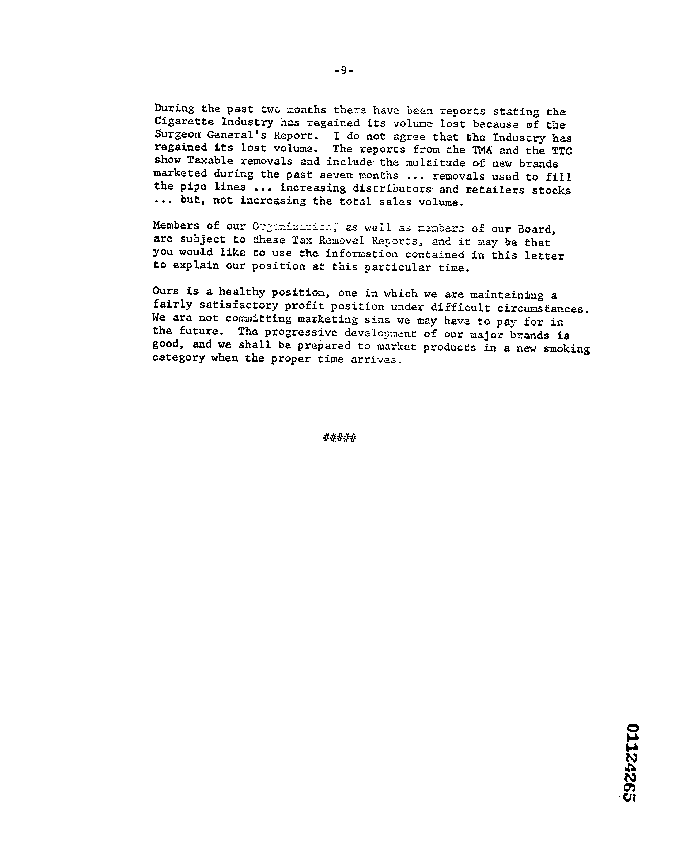 Comprehensive letter pertaining to the sales position of the various cigarette brands