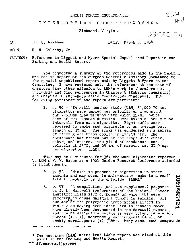I would speculate from the above information...that L & M's report to the Surgeon General's Advisory Committee probably includes work dating back to the late 1950's.