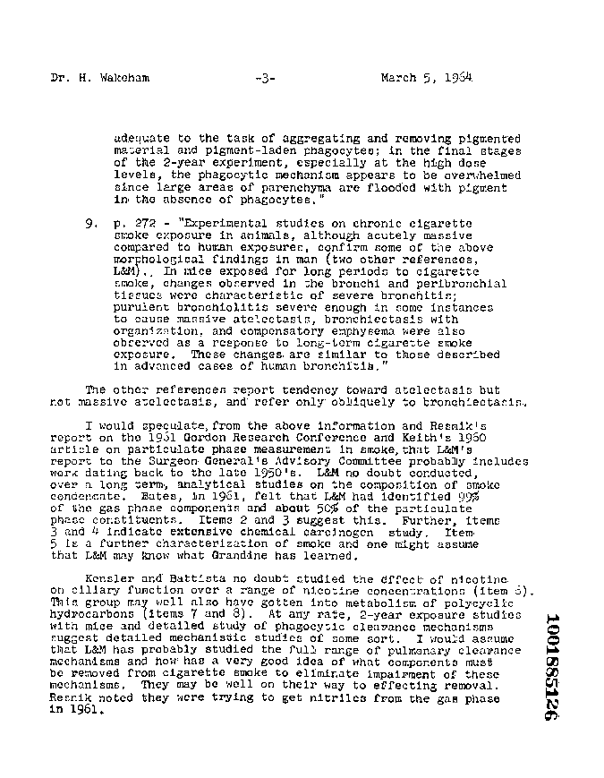 ...I would assume that L & M has probably studies the full range of pulmonary clearance mechanisms and now has a very good idea of what components must be removed from cigarette smoke to eliminate impairment of these mechanisms. They may be well on their way to effecting removal....