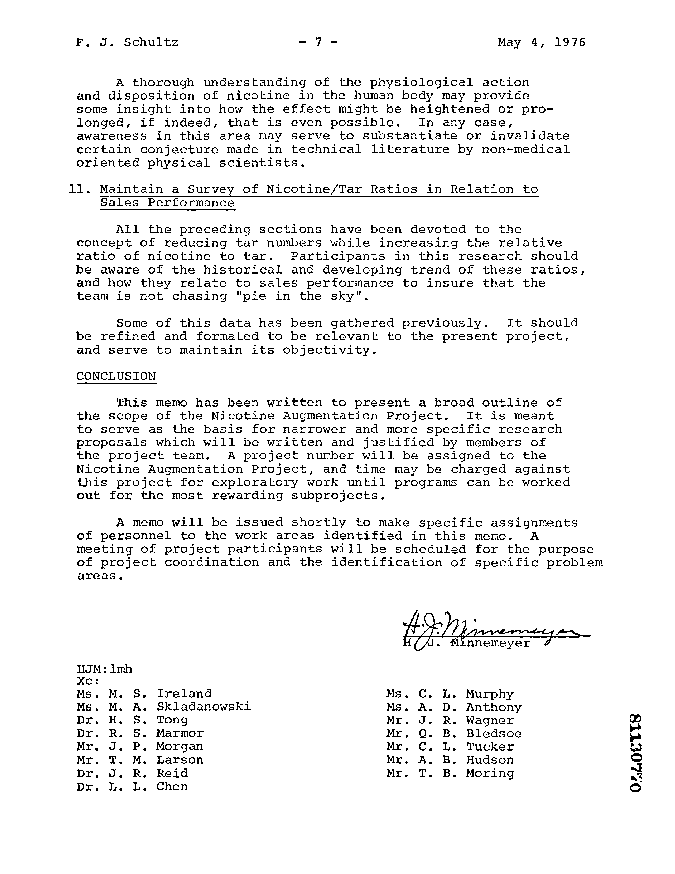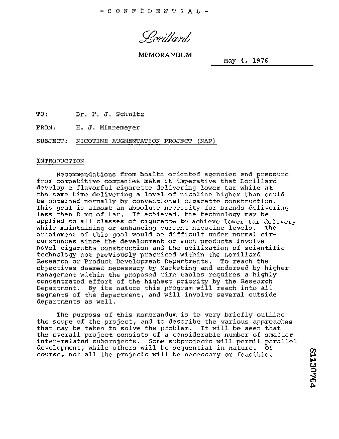 Inter-Office Lorillard correspondence: Nicotine Augmentation Project (NAP)
