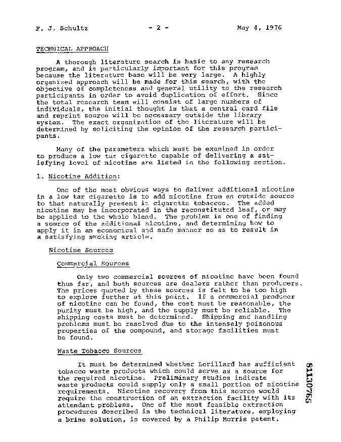 If the company is successful in obtaining a supply or source of nicotine, the next immediate problem is to determine how and where to apply it to our product. It is very clear that nicotine can not be used in its pure form....