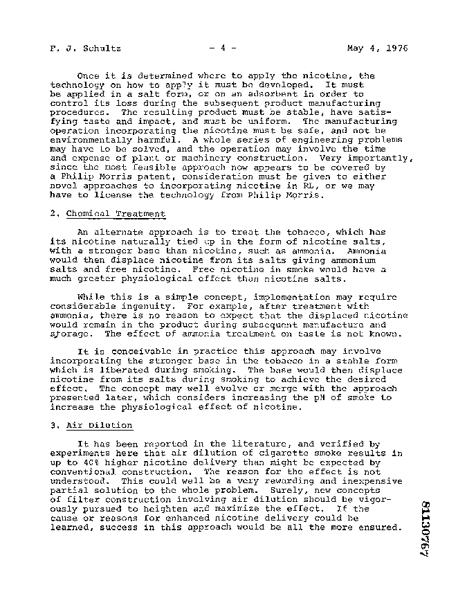 The "free nicotine in smoker would have a much greater physiological effect than nicotine salts." "...It has been reported in the literature, and verified by experiments here that air dilution of cigarette smoke results in up to 40% higher nicotine delivery than might be expected by conventional construction."