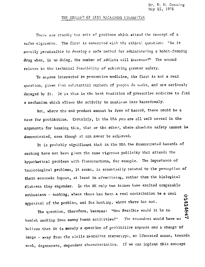 Title: The Concept of Less Hazardous Cigarettes