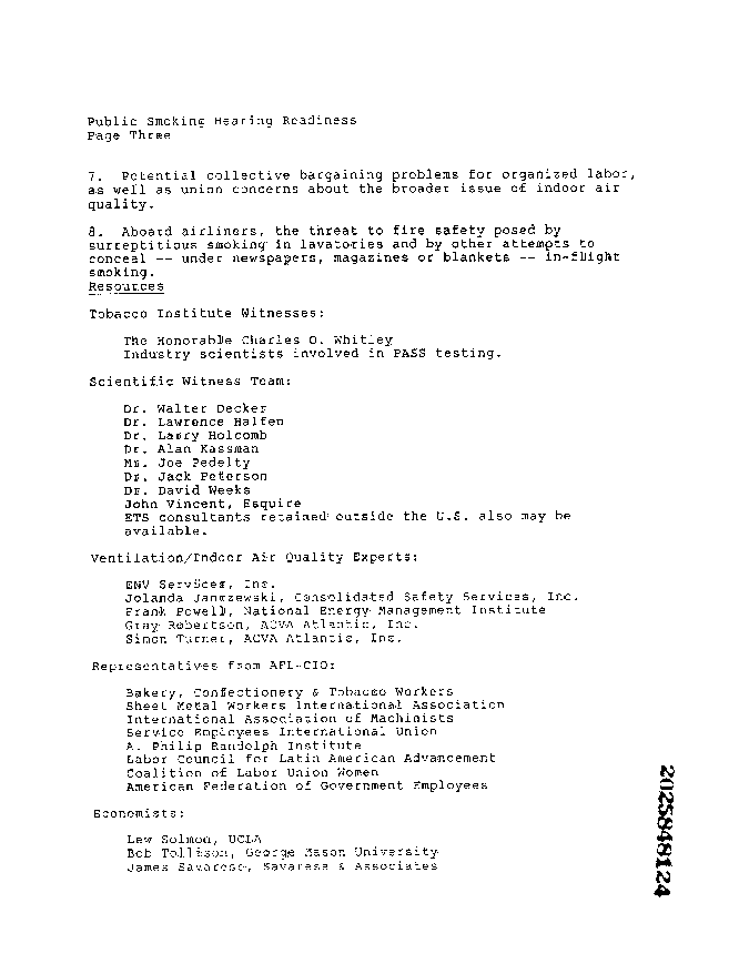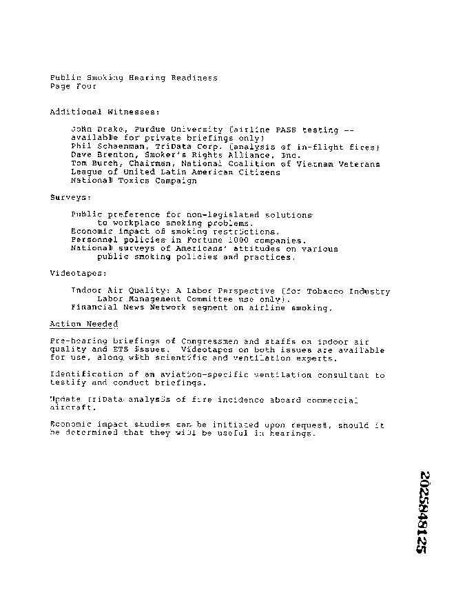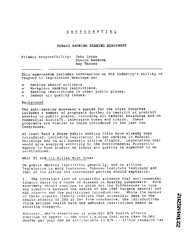 Document Title: Public Smoking Hearing Readiness (confidential document)
