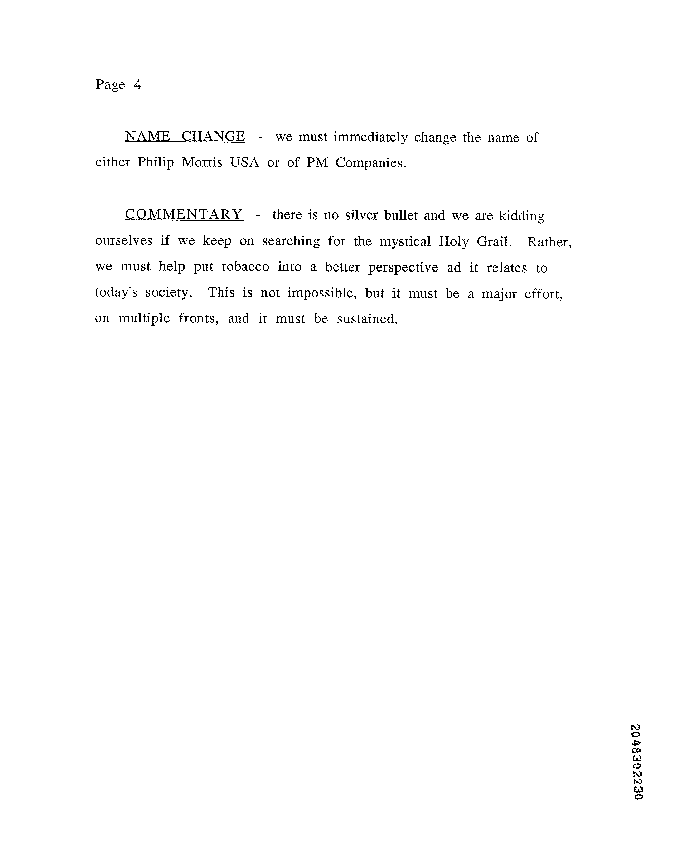 "What are we trying to accomplish?" Prevent further deterioration of overall social, legislative, and regulatory climate, and ultimately actually improve the climate for the marketing and use of tobacco products.