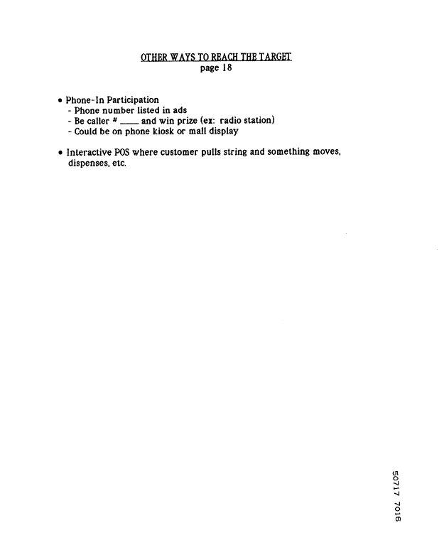 URL: Sorry, the way the RJR site is set up, I can't give you a URL. To find this document, go to http://www.rjrtdocs.com/, click on 'new Search' and enter as Combined Text the phrase 'Other Ways to Reach the Target' (without quotation marks). Only one document is returned, and this is it. Click 'view all pages' and grab a cup of coffee while it loads. Worth the wait.