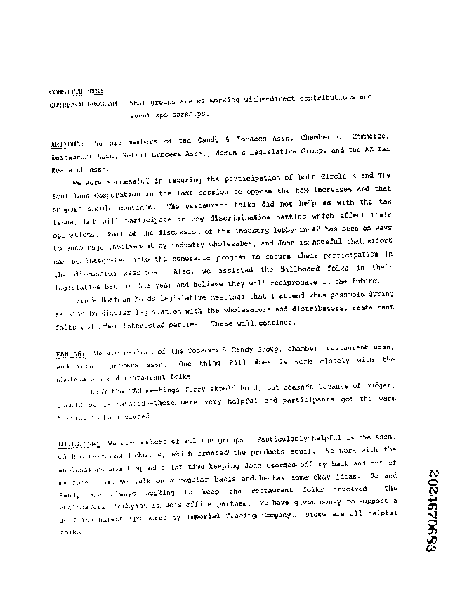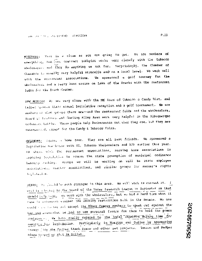 Philip Morris Document Listing Activities in New Mexico and States in the Region