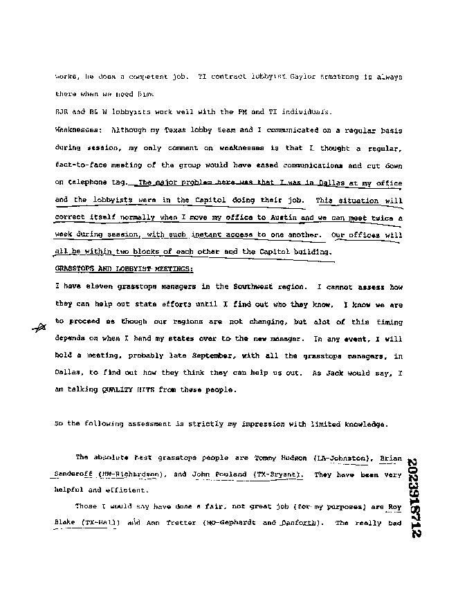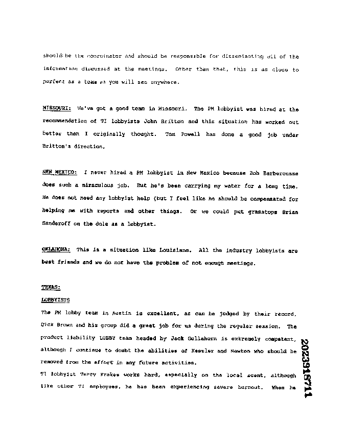 Philip Morris Document Assessing Industry Lobbyists -- dealing with weaknesses