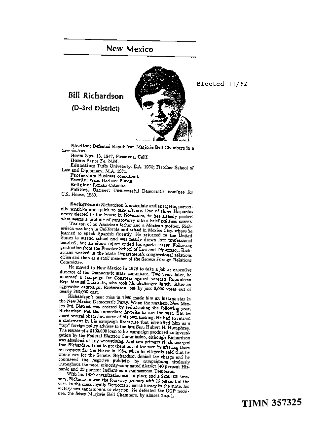 Tobacco Institute on New Mexico Bill Richardson (D-3rd District)