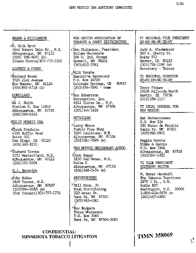 Tobacco Institute on NM Tobacco Action Network (TAN) Advisory Committee