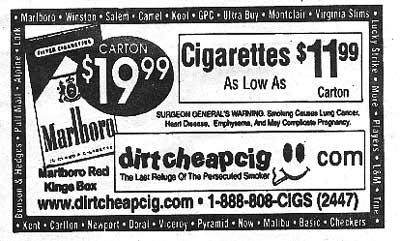 | Nov30-Dec5 | Camel p.40 | Marlboro p.31 | Dirt Cheap Cigarettes p.9 | |